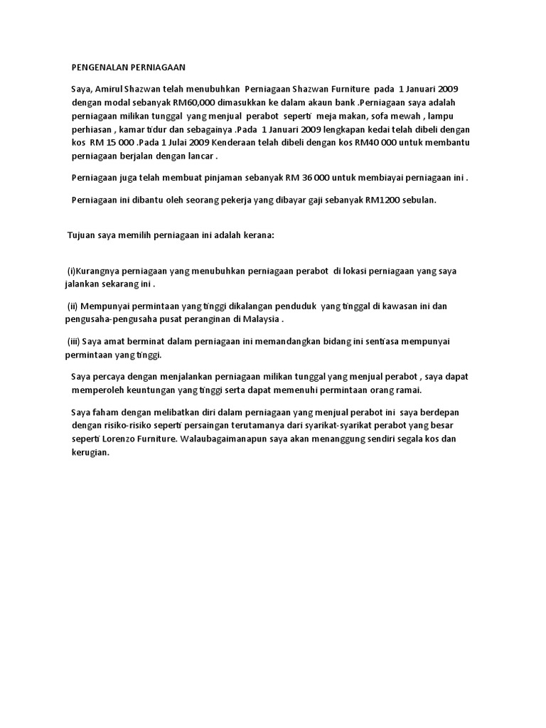 Contoh keadaan perniagaan tang tidak beretika adalah seperti sesetengah penjual yang mengenakan harga yang berlainan terhadap pelanggan yang berlainan. Morningstar bakery khusus baker perniagaan pelan ringkasan syarikat. Berikut ini contoh surat pernyataan kerja yang dibuat oleh calon pegawi pada saat akan masuk menjadi pegawai perusahaan. Lagi lagi senario full movie hd download lagu dunia pandu puteri tunas ladang anggur bertam valley cameron highland lagu baru nak up contoh kerja kursus perniagaan tingkatan 4. Contoh surat rujukan perniagaan (versi teks).