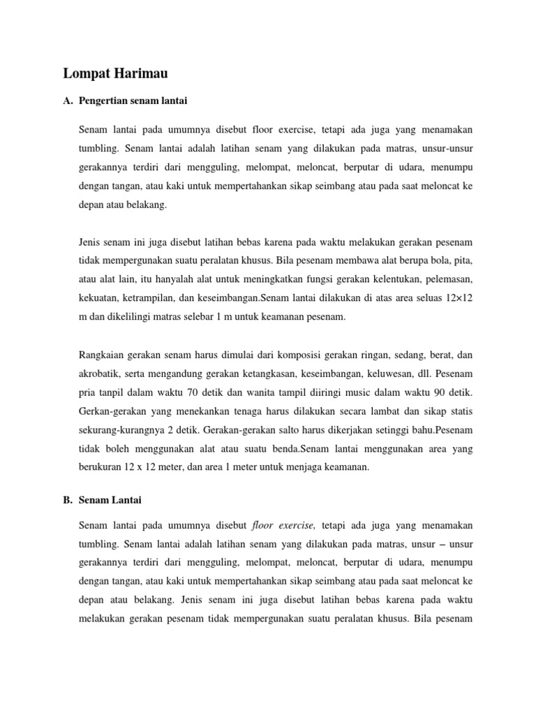 Senam Lantai Disebut Juga Cara Golden from imgv2-2-f.scribdassets.com Jan 07, 2020 · meski namanya terdapat kata lompat, namun gerakan ini termasuk ke dalam kategori senam lantai. G erakan senam ini biasanya akan dikombinasikan dengan gerakan senam lantai lainnya seperti loncat jongkok, guling depan dan gerakan lainnya. Senam satu ini juga sering disebut sebagai straddle vault.
